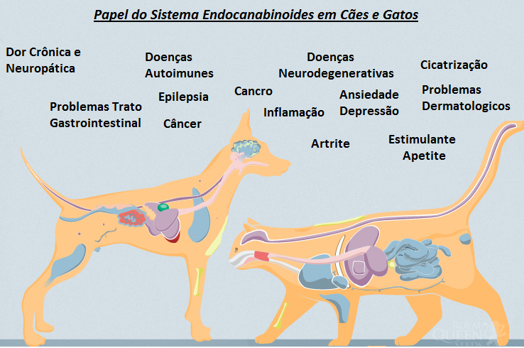 Vários estudos demonstram a ação dos canabinoides, exógenos e endógenos, na modulação de doenças e transtornos comportamentais, incluindo patologias como osteoartrite, dermatite atópica, mielopatias degenerativas, epilepsia, doenças neuroinflamatórias e outros. Estudos clínicos já testaram a eficácia do óleo de CBD em cães, gatos e cavalos, apresentando bons resultados, especialmente em apoio à terapia normal 5.